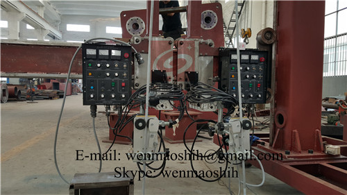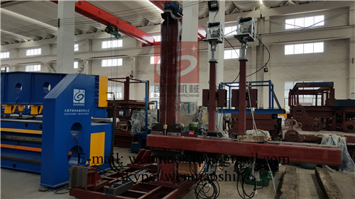 Per saldatura più stretta dei deflettori interni al sostegno a cassone, c'è spazio lasciato davanti a saldatura fra i deflettori ed il sostegno a cassone durante il montaggio dei deflettori. In primo luogo sollevi la retro-saldatura di CO2 del posto del sostegno a cassone per incorniciare di questa macchina, quindi il potere della saldatura di scoria elettrofusa ha appeso sull'asta realizzerà la saldatura di scoria elettrofusa verticale al foro pretagliato del pezzo in lavorazione. La struttura dell'colonna-asta può viaggiare a volontà lungo longitudinalmente la direzione del pezzo in lavorazione.