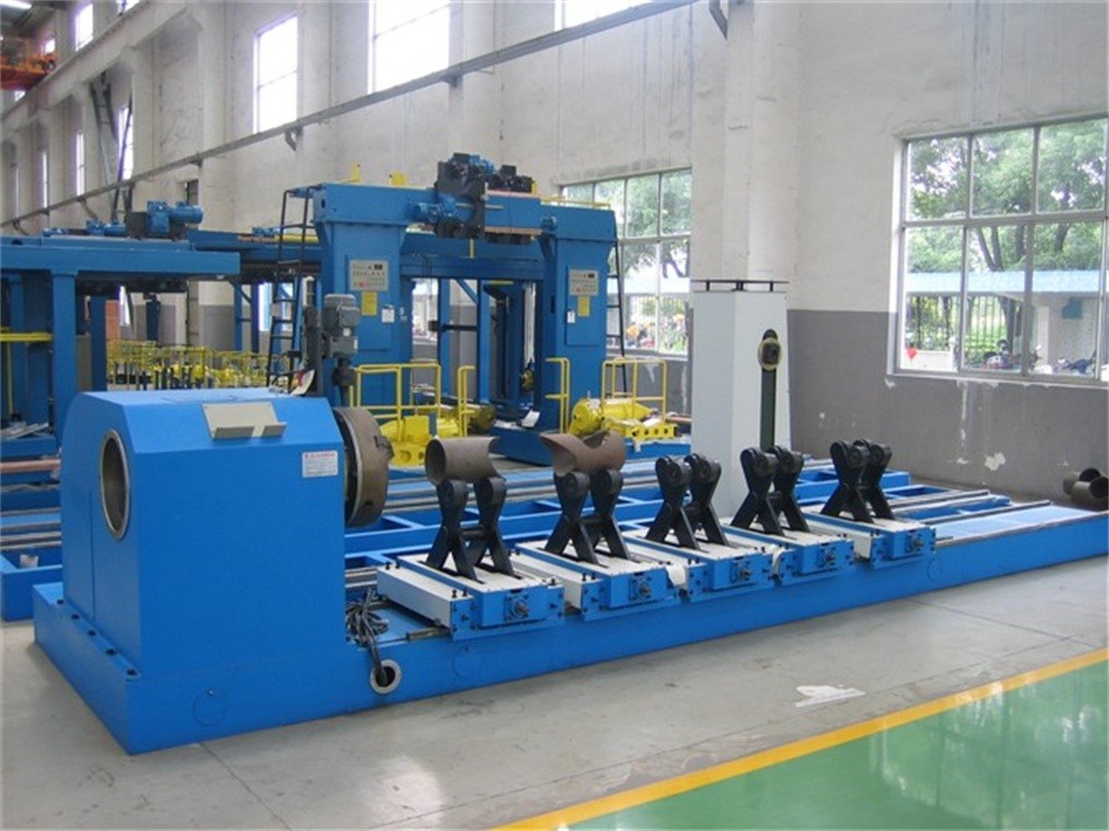 Questa macchina è utilizzata per la saldatura automatica della SEGA del sostegno a cassone. Anche può essere usata per la saldatura del raccordo del H-fascio in giù mano dopo il cambiamento dello scaffale guidante dell'arco. Dopo il completamento del sostegno a cassone ESW (saldatura di scoria elettrofusa), trasferisca il sostegno a cassone ad un lato della saldatrice della SEGA. E poi trasferisca il fascio ad un'altra saldatrice della SEGA dopo il completamento dell'una cucitura. Il braccio di saldatura con la testa della saldatura ad arco sommersa può muoversi nelle direzioni verticali ed orizzontali per incitare la testa per saldare a puntare sulla cucitura di saldatura. Sul braccio di saldatura, c'è dispositivo arco-guidante meccanico pneumatico per realizzare il tracciato. E la macchina può fare la saldatura automatica della SEGA. C'è alimentazione di cambiamento continuo e dispositivo di recupero per questa macchina.