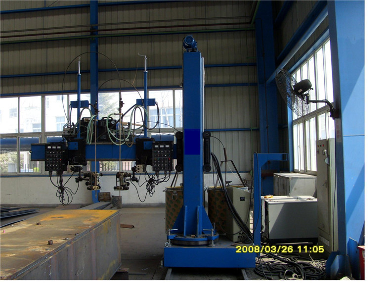 Per saldatura più stretta dei deflettori interni al sostegno a cassone, c'è spazio lasciato davanti a saldatura fra i deflettori ed il sostegno a cassone durante il montaggio dei deflettori. In primo luogo sollevi la retro-saldatura di CO2 del posto del sostegno a cassone per incorniciare di questa macchina, quindi il potere della saldatura di scoria elettrofusa ha appeso sull'asta realizzerà la saldatura di scoria elettrofusa verticale al foro pretagliato del pezzo in lavorazione. La struttura dell'colonna-asta può viaggiare a volontà lungo longitudinalmente la direzione del pezzo in lavorazione.