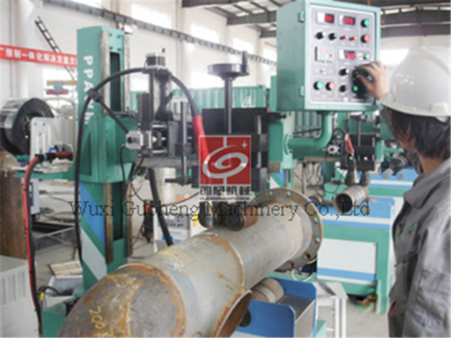 La saldatrice automatica del tubo è l'apparecchio per saldare automatico che è applicabile per i giunti di testa saldati fusione fra i tubi diritti, fra il tubo e la flangia diritti o fra il tubo ed il tubo diritti di angolo. Questa attrezzatura applica la struttura integrata e pricipalmente comprende la parte principale di saldatura, il rotolo di giro, wiggler di saldatura automatica di HBQ-C, meccanismo di sollevamento di saldatura della pistola, fonte di saldatura e sistema di controllo elettrico.